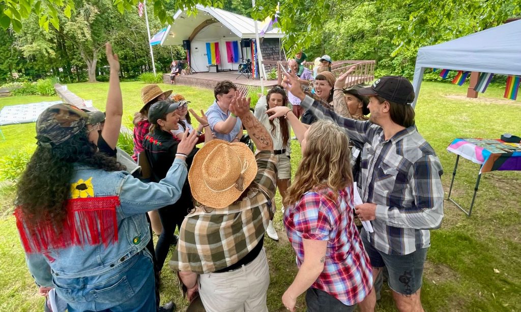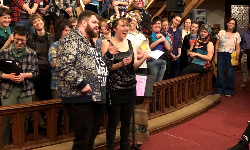 Trust Your Moves is a community singing project for queer and trans people, designed around connection, liberation and co-creation. Emily is the conductor, arranger, composer and instigator. We’ve presented six full concerts and been supported by Independence Foundation, Leeway Foundation, and SBMA. Hundreds of singers have participated in TYM, and we’ve collaborated with almost a dozen queer and trans composers to create brand-new choral works, including Julian Talamantez Brolaski, Daniel De Jesús, Thunder Thighs, Hermit High Priestess, Joel Chartkoff, Eddie Rubeiz, Snow Caps and Hot Tears.