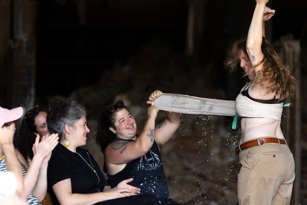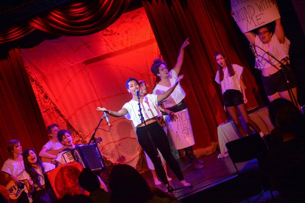 Going Down Mount Moriah is choral theater and feminist spectacle. A choir rises up from a murky lake bottom: there’s finger-pointing, navel-gazing, rollerskating, and rattling the bars of the cage. A show exploring the extent to which trauma constitutes personhood, Going Down Mount Moriah will tell you jokes, terrify you and sing you to sleep, not necessarily in that order.